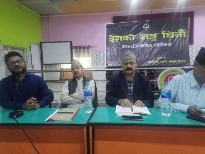बिराटनगर, मोरङ :- नागरिक शक्ति नेपालद्वारा मोरङ जिल्ला, बिराटनगरमा “देशका शत्रु” विषयमा प्राज्ञिक व्यक्तित्वहरूसँग अन्तरक्रिया कार्यक्रम सफलता पूर्वक सम्पन्न गरिएको छ।