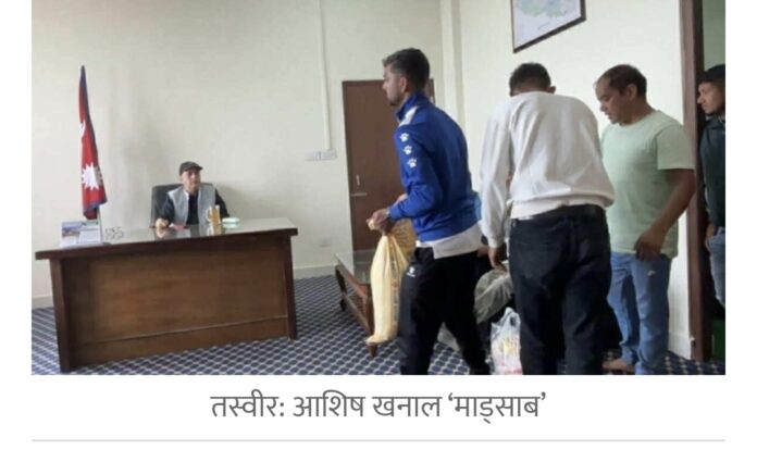 स्थानीय युवाले आज नगरपालिकाको कार्यालय पुगेर विरोध स्वरुप मेयरलाई तेल–चामल हस्तान्तरण गरेका हुन् ।