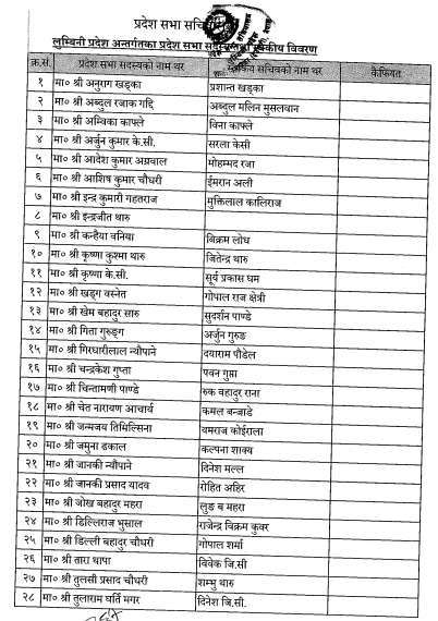 लुम्बिनी प्रदेश सांसदका स्वकीय सचिवः श्रीमान्, श्रीमती, छोरा, छोरी, भाइ।