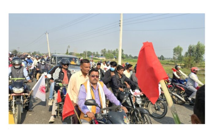 सिरहामा एमालेको मोटरसाइकल र्‍यालीमा मान्छे उतार्न पेट्रोल वितरण ।