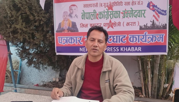 नवलपरासी, माघ १६ । आगामी फागुन २१ गते हुने प्रतिनिधिसभाको निर्वाचनका लागि पश्चिम नवलपरासी क्षेत्र नं. २ मा नेपाली कांग्रेसको तर्फबाट युवा उम्मेदवार भिम बहादुर थापा (भरत) हुनुहुन्छ । नेपाली कांग्रेस लुम्बिनी प्रदेश सदस्य समेत रहनुभएका थापा स्थानीय तहमा कार्यकाल पुरा गरेका समाजसेवीका रूपमा चिनिनुहुन्छ।