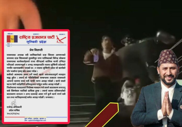 बिहीबार बेलुका रास्वपा सभापति लामिछाने तुलसीपुर आउनेक्रममा भेला भएका रास्वपाका कार्यकर्ताहरुले वीरेन्द्र चोकमा वीरेन्द्रको सालिकमाथि उभिएर अभद्र व्यवहार गरेको घटना सार्वजनिक भएको थियो ।