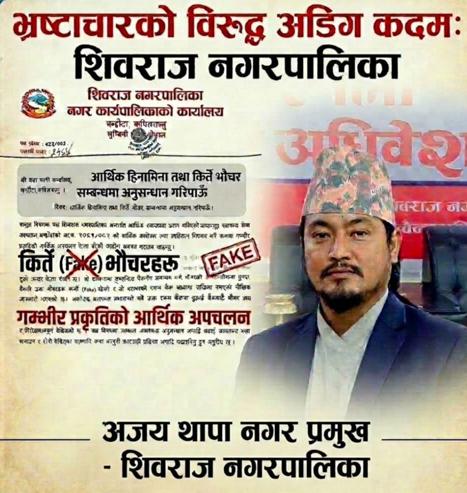 कपिलवस्तु – शिवराज नगरपालिका-५ स्थित आधारभूत सेवा अस्पतालमा करिब ३८ लाख रुपैयाँ हिनामिना भएको विषयले स्थानीय स्तरमा व्यापक चासो र चिन्ता उत्पन्न गरेको छ। घटनालाई गम्भीर रूपमा लिँदै शिवराज नगरपालिकाका प्रमुख अजय थापा स्वयं अख्तियार दुरुपयोग अनुसन्धान आयोग पुगेका छन्।नगरप्रमुख थापाले अस्पतालमा भएको भनिएको आर्थिक अनियमितताबारे निष्पक्ष छानबिन गरिनुपर्ने माग गर्दै अख्तियारमा औपचारिक निवेदन दर्ता गराएका हुन्।